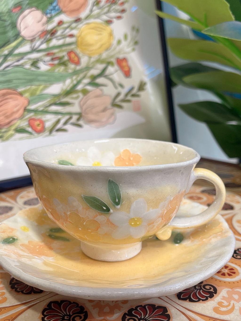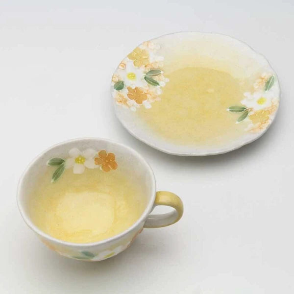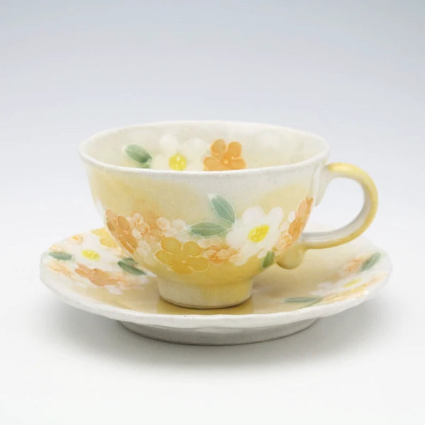 日本舞陶馆 濑户烧 手绘繁花杯 <黄彩小花> 咖啡茶杯碟套装 50769