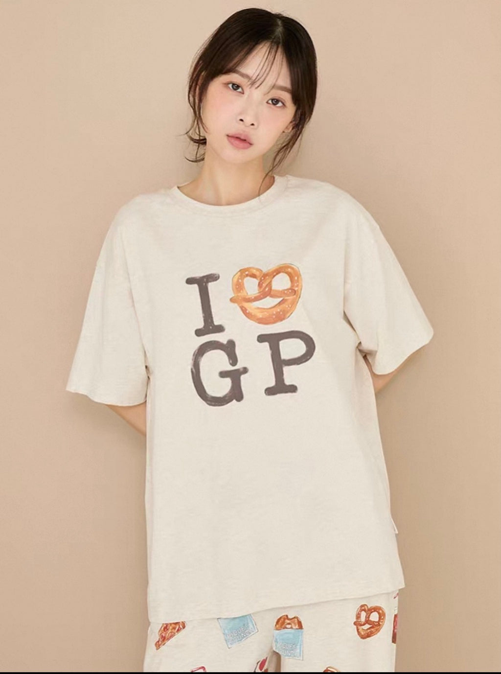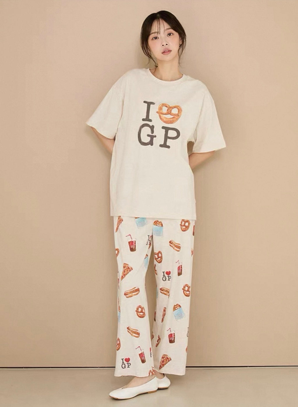 日本 gelato pique 26春夏新品 美式美食系列家居服 燕麦色短袖长裤套装 均码