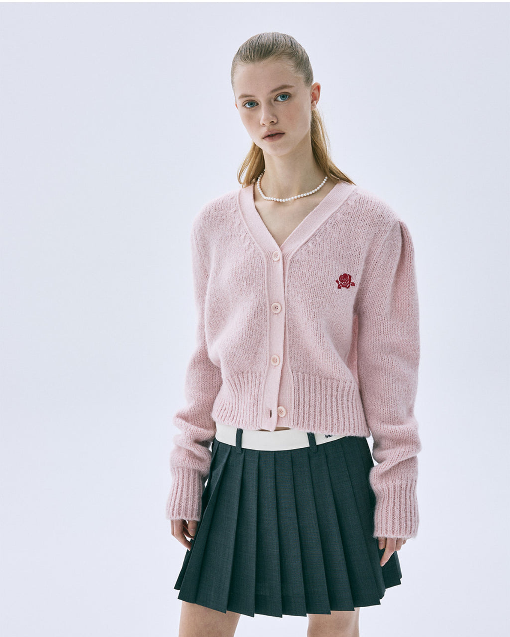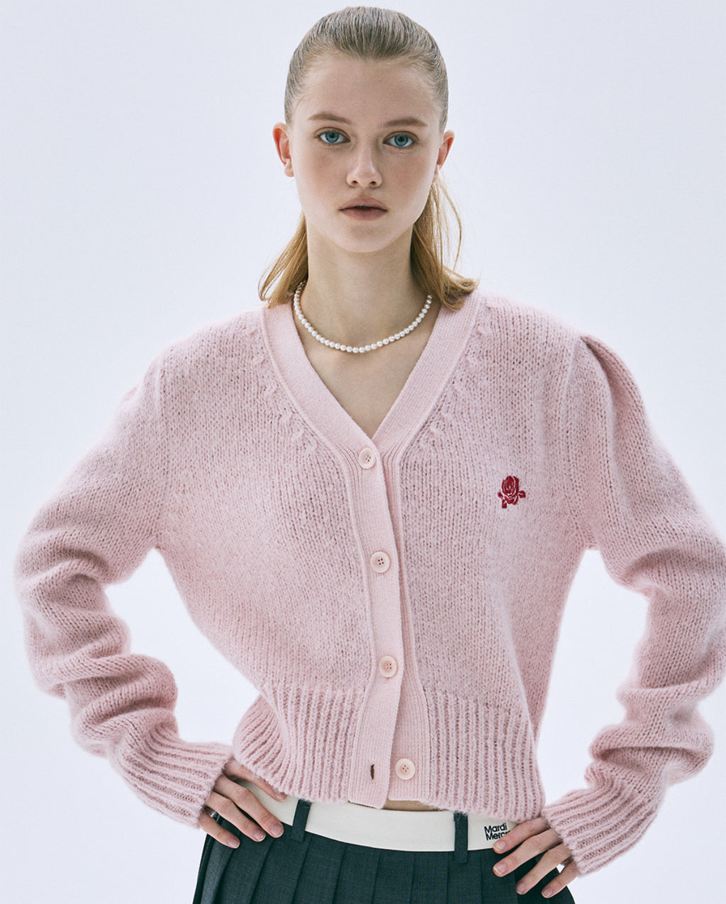 韩国 Mardi Mercredi 小雏菊 排扣毛衣开衫 FOLIE A DEUX系列 粉色毛衣开衫 均码