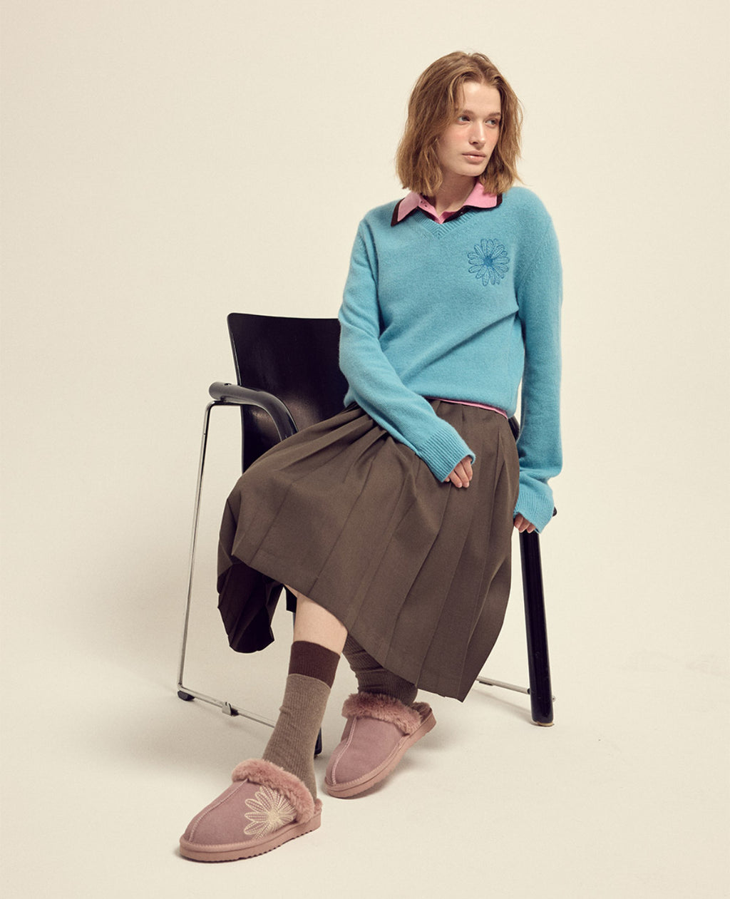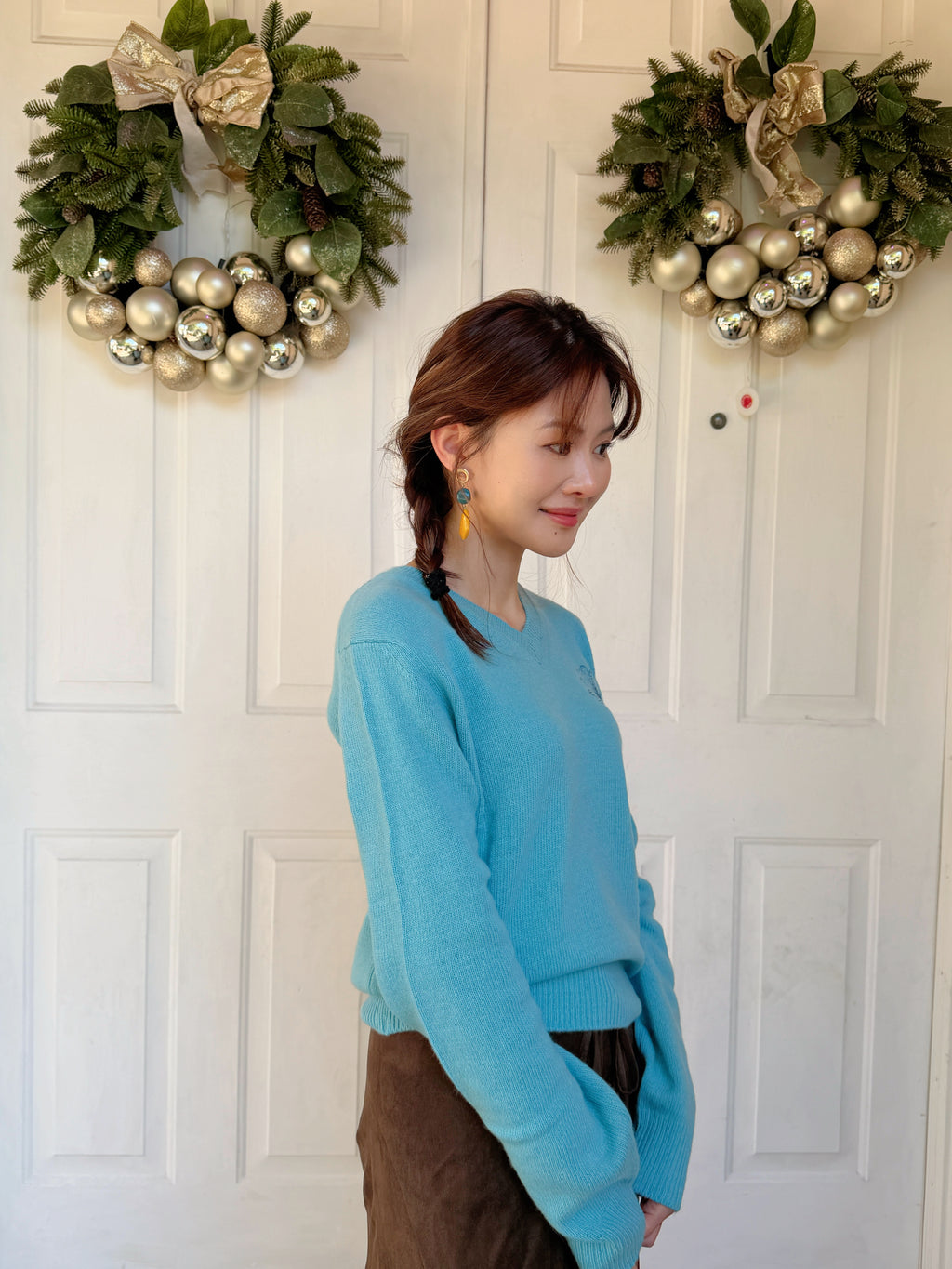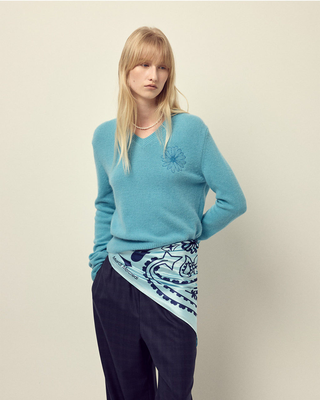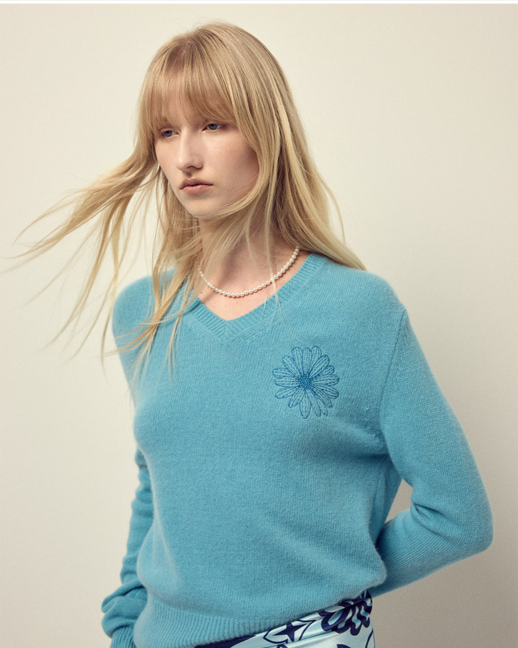 韩国 Mardi Mercredi 小雏菊V领毛衣 蓝色小蓝雏菊 均码