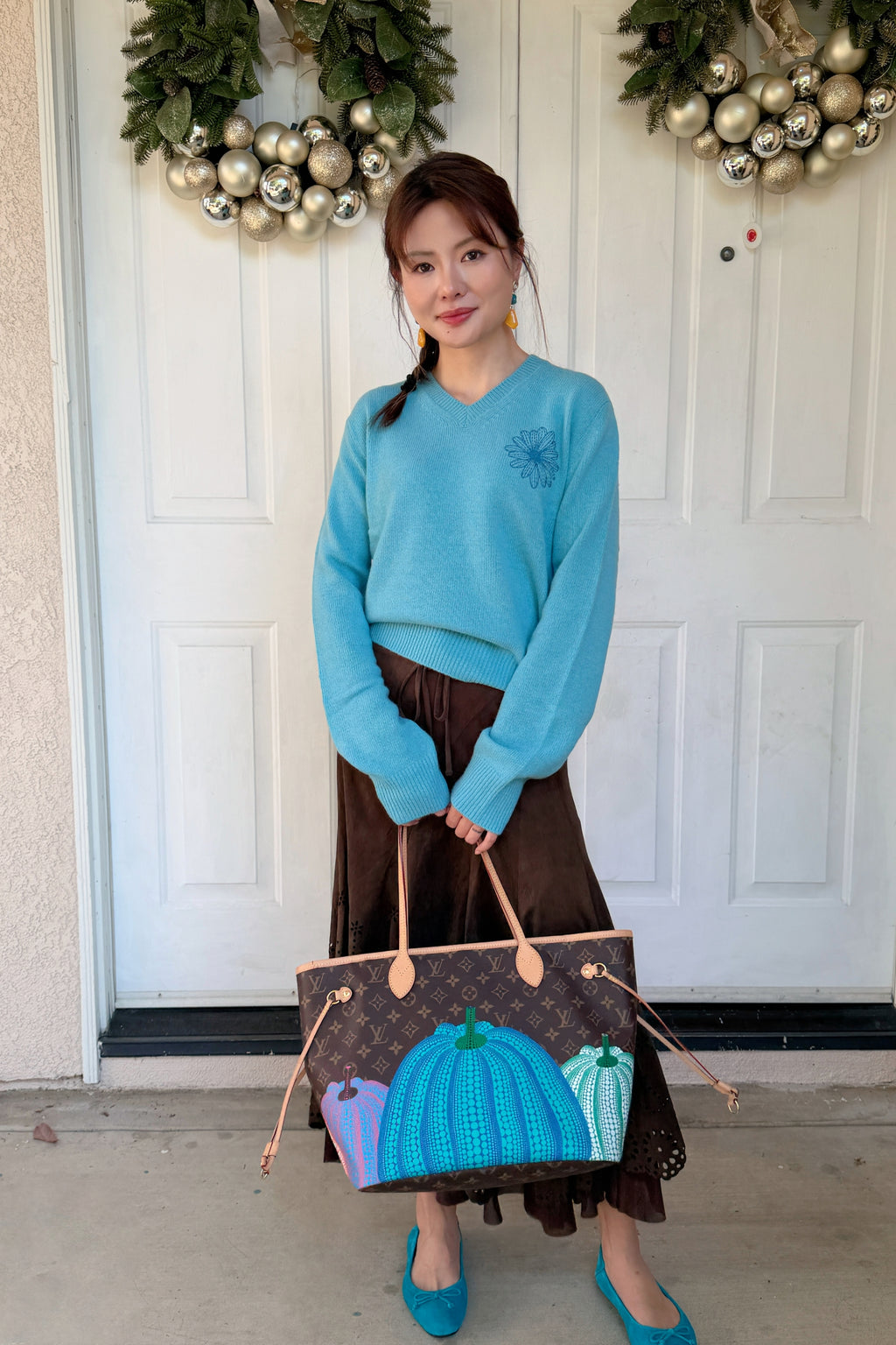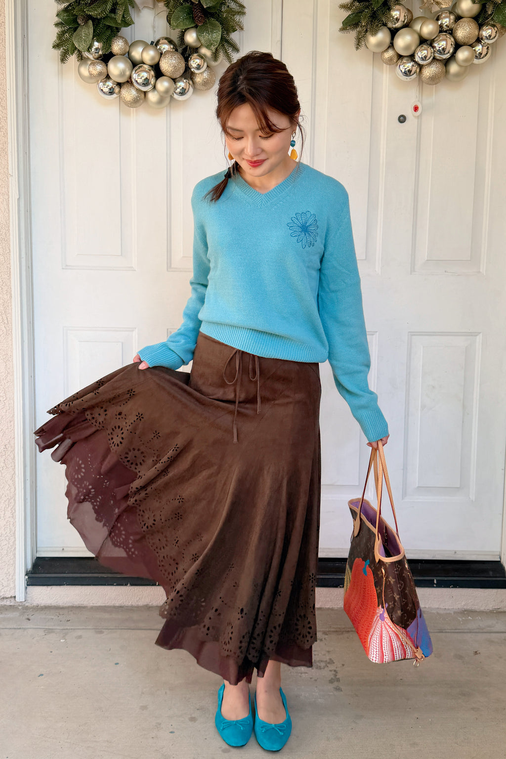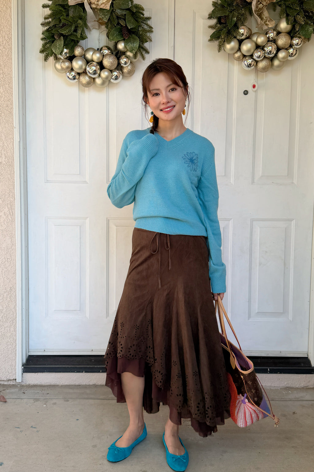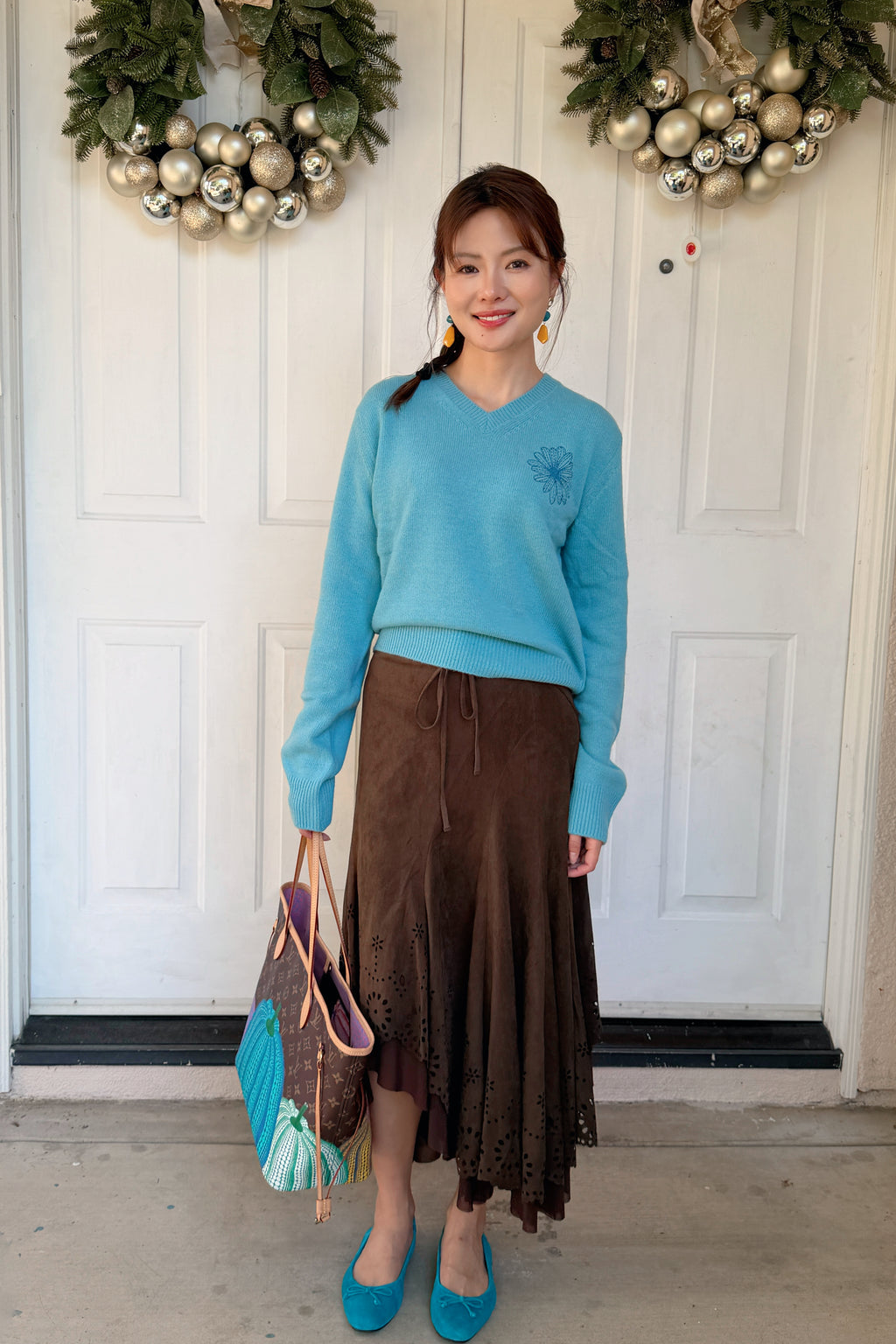 韩国 Mardi Mercredi 小雏菊V领毛衣 蓝色小蓝雏菊 均码