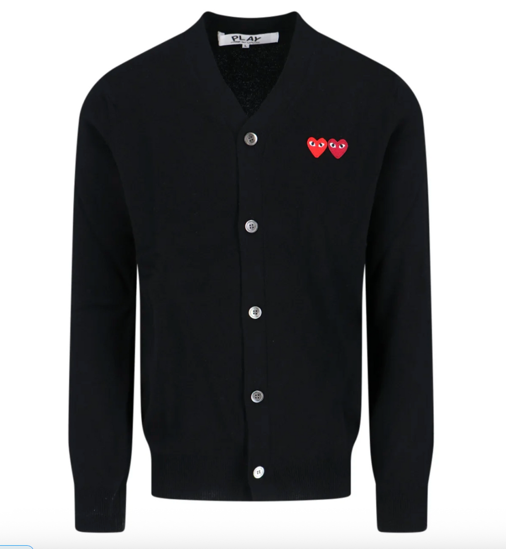 COMME des GARÇONS 川久保玲【PLAY 男士】 100%羊毛V领 黑色羊毛衫/开衫 双心