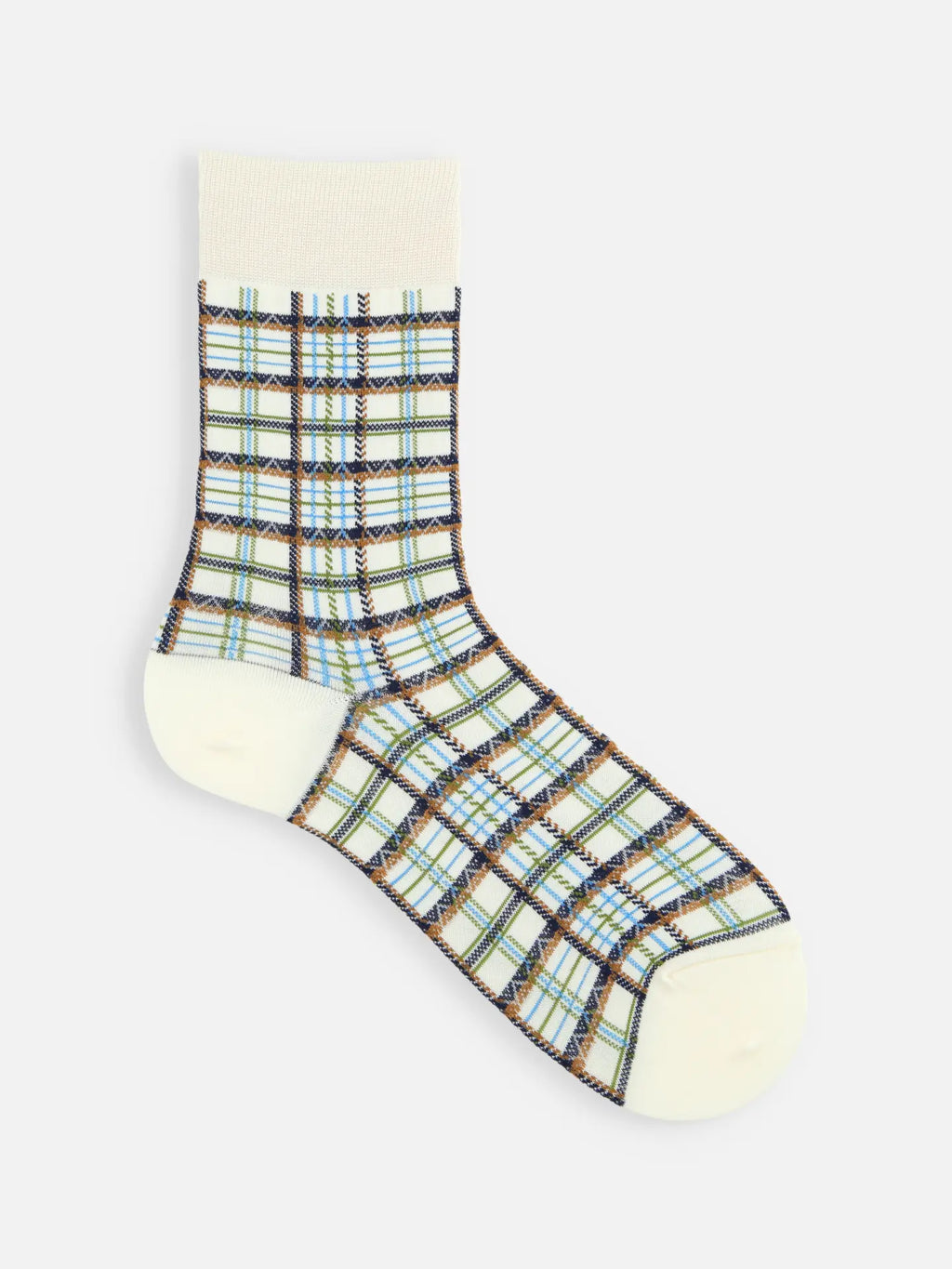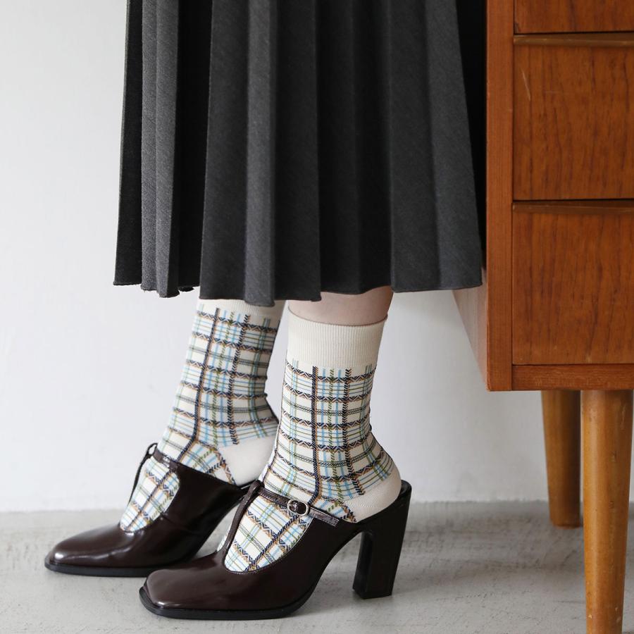 日本靴下屋Tabio 复古线条格纹短袜 (22.5-24.5cm可穿)