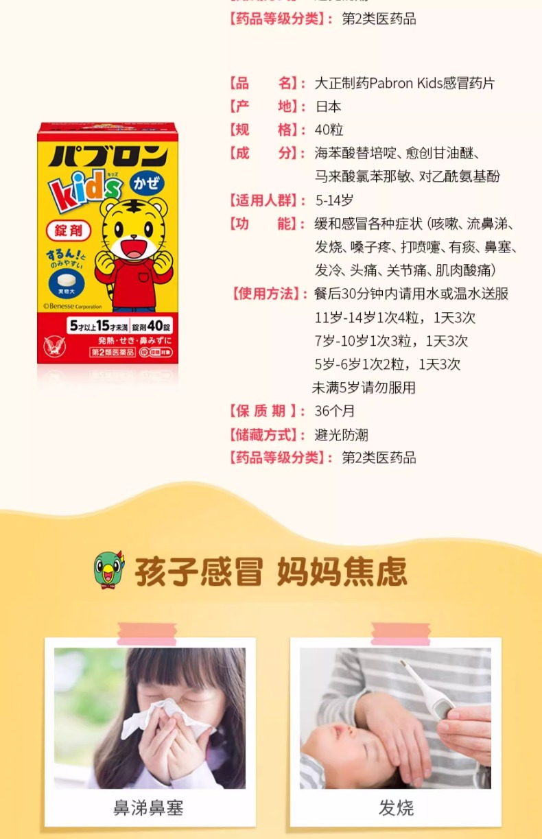 日本TAISHO大正制药 感冒药儿童感冒药 40粒(保质期2027.12)