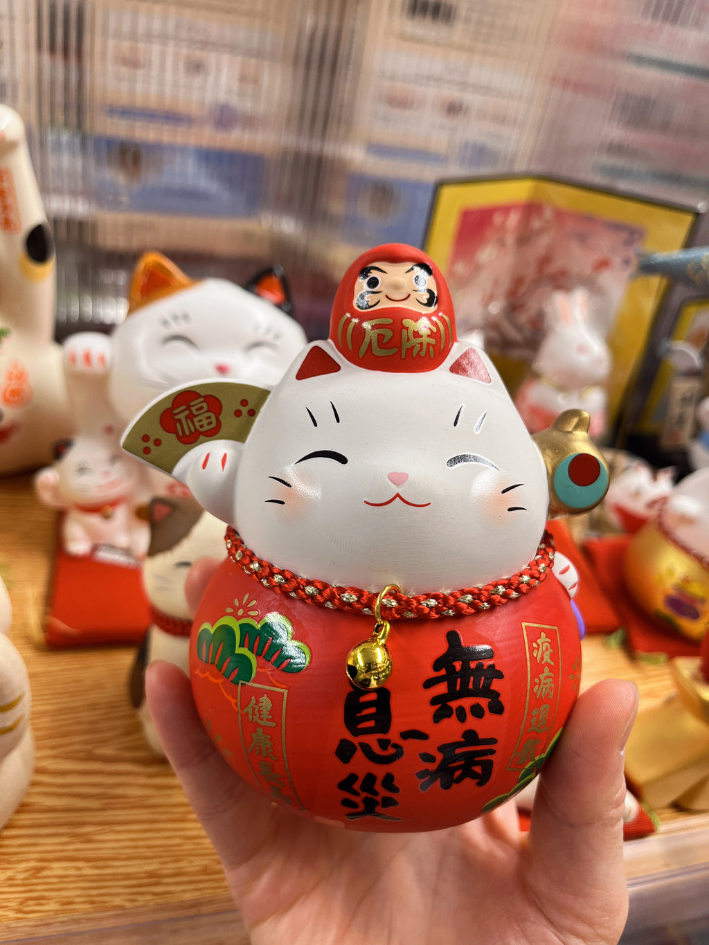 日本 薬師窯 招财猫 錦彩無病息災 #7832