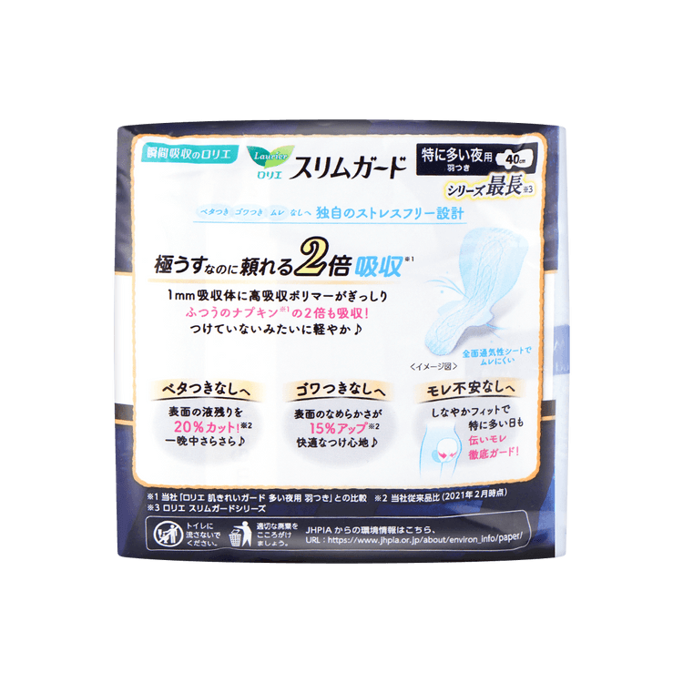 日本 Kao花王 Laurier乐而雅 绵柔夜用卫生巾 无香料 35cm 13枚入
