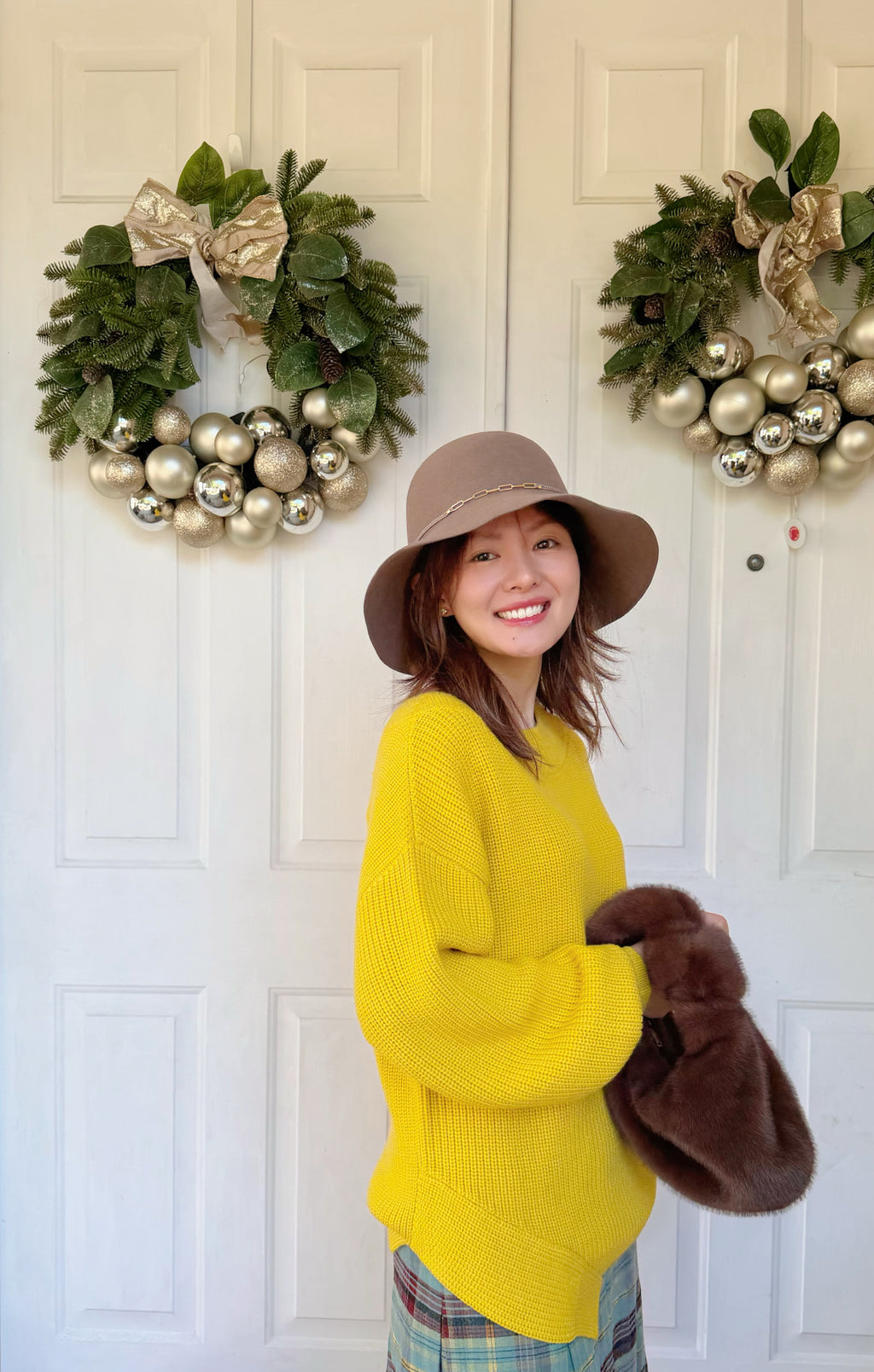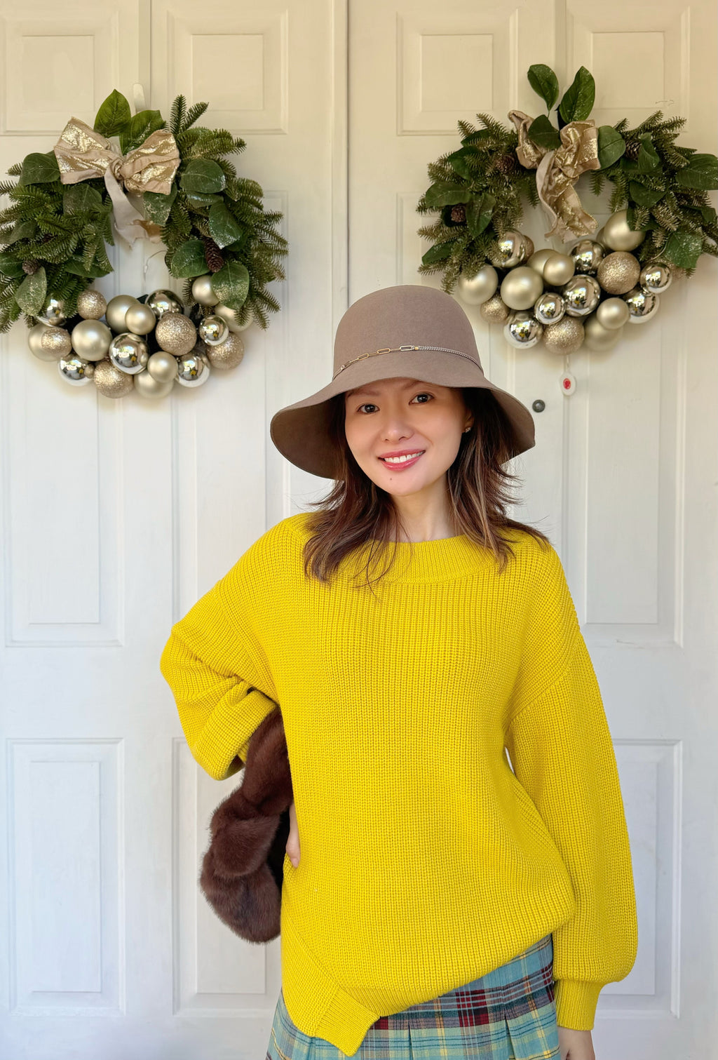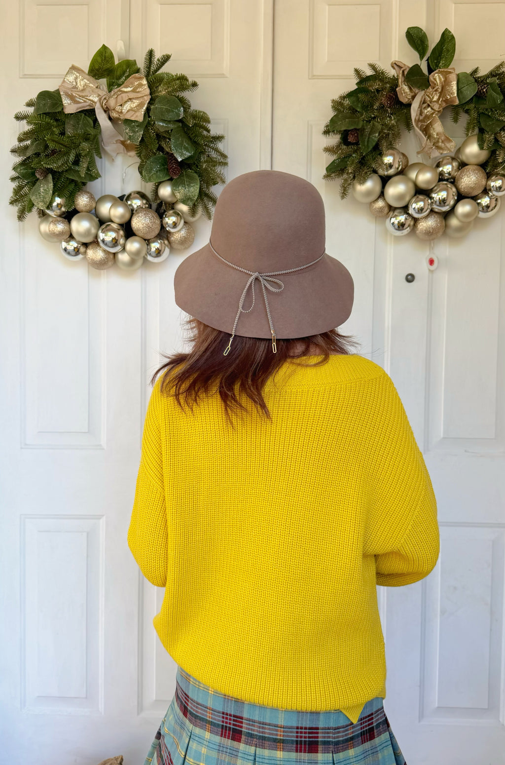 【Riko's collection】暖黄色一字肩不规则下摆绵羊毛毛衣